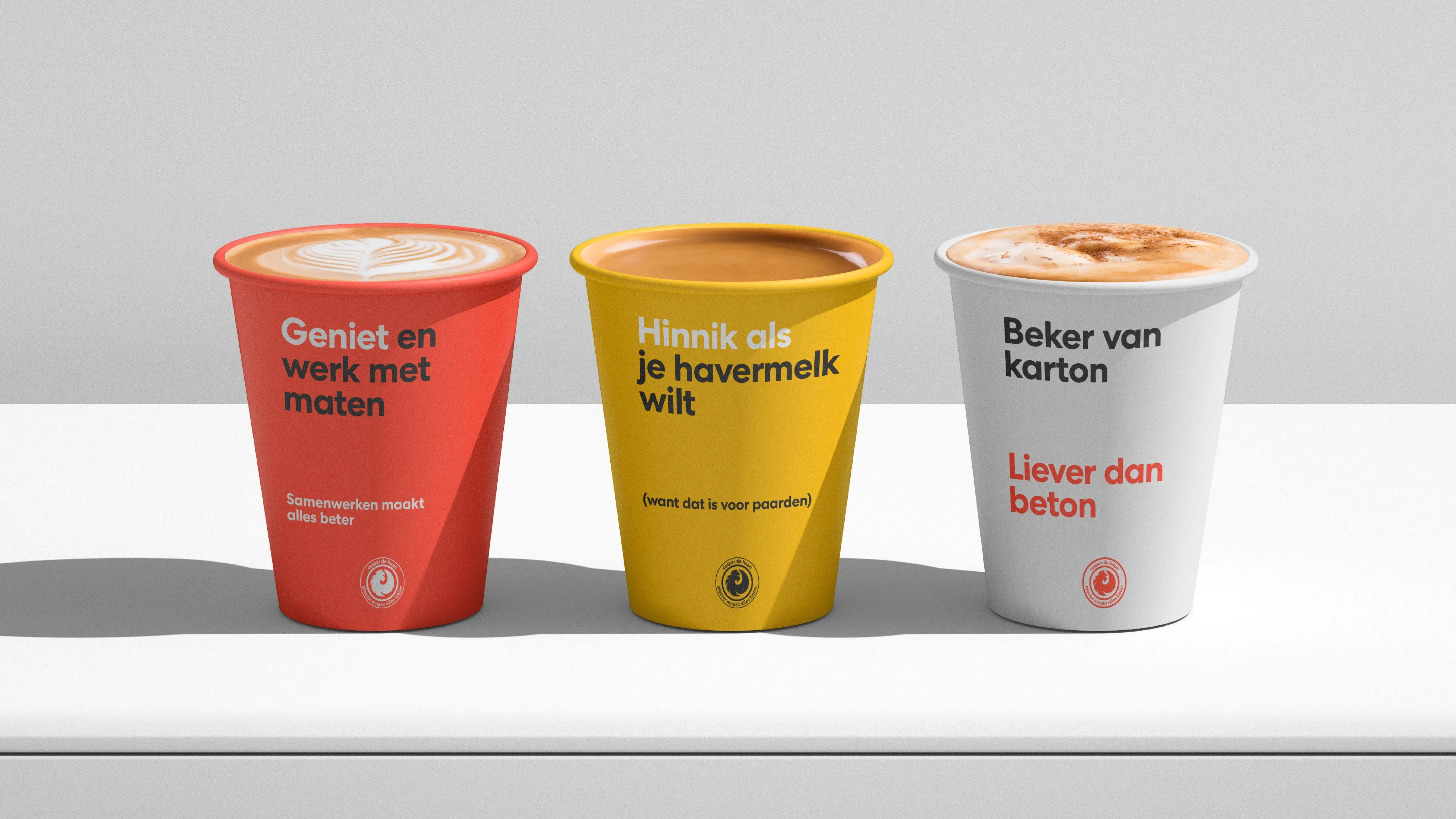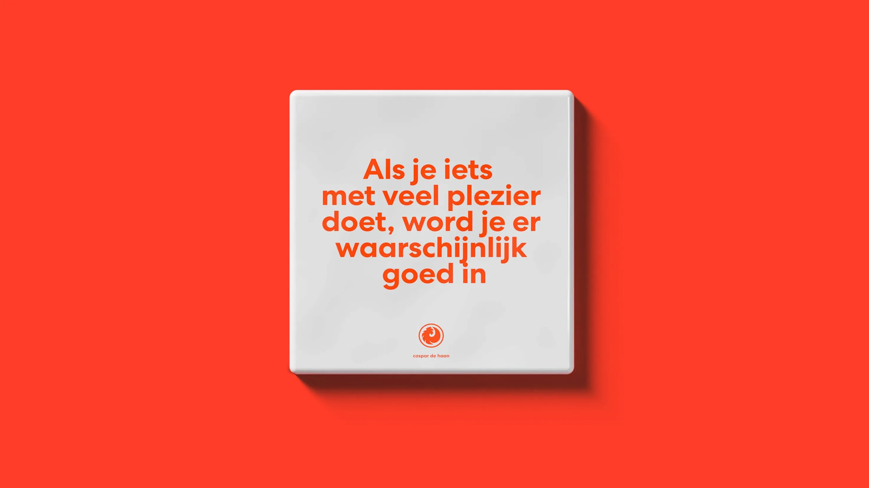 “Het mag dan wat lang zijn voor op een tegeltje, maar het zou ons motto kunnen zijn: Als je iets met veel plezier doet, word je er waarschijnlijk goed in.” De eerste regel uit het nieuwe merkmanifest van Caspar de Haan zet meteen de toon. Wij hadden de eer om het oudste bedrijf van Eindhoven (anno 1749) te mogen herpositioneren. Daarbij vertrouwden we eens te meer op ons eigen motto: authenticiteit wint. En zeg je Caspar de Haan, dan zeg je plezier. Het maakt alles beter. Of het nu gaat om schilderen, renovatie, brandveiligheid en onderhoud. Of de samenwerking met opdrachtgevers, toeleveranciers, bewoners en collega’s. Caspar de Haan is jouw favoriete club.